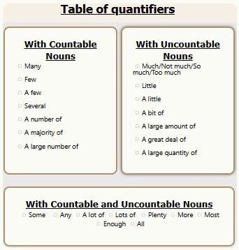 Los cuantificadores se ponen delante de los nombres y los usamos todo el rato en inglés.