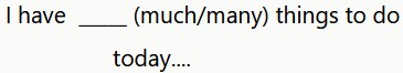 Utilizamos «many» para los sustantivos contables en plural y «much» para los sustantivos incontables. Ambas palabras se anteponen a los sustantivos e indican que hay una cantidad mayor de algo.