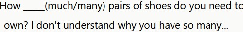 ‘So much’ ‘So many’ / ‘Too much’ ‘Too many’