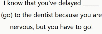 ℹ️ Utilizamos un gerundio después del verbo ‘delay’.