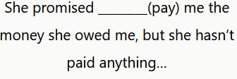ℹ️ Usamos ‘to infinitive’ después del verbo ‘promise’.
