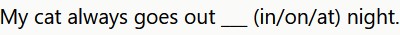 Usamos ‘at’ para la noche, y ‘in’ para la tarde.