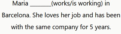 María trabaja en Barcelona. Le encanta su trabajo y lleva 5 años en la misma empresa.