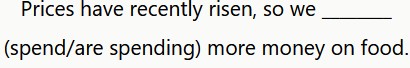 Los precios han subido recientemente, por lo que gastamos más dinero en comida.