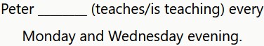 Peter da clases todos los lunes y miércoles por la tarde.