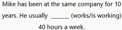Mike lleva 10 años en la misma empresa. Suele trabajar 40 horas a la semana.