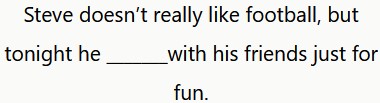 A Steve no le gusta mucho el fútbol, pero esta noche va a jugar con sus amigos para divertirse.