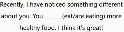 Últimamente, he notado algo diferente en ti. Estás comiendo más alimentos saludables. ¡Creo que es genial!