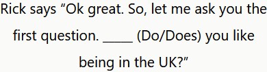 Rick dice «Vale, genial. Déjame que te haga la primera pregunta. ¿Te gusta estar en el Reino Unido?»