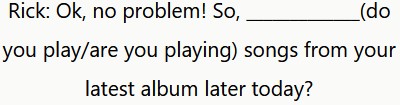 Rick: Ok, ¡no hay problema! ¿Vas a tocar canciones de tu último disco hoy?