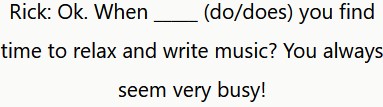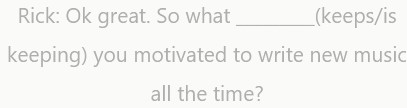 Rick: Ok. ¿Cuándo encuentras tiempo para relajarte y escribir música? Siempre pareces muy ocupado.