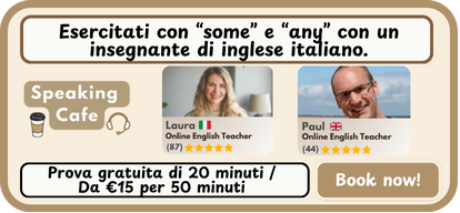 ‘Some’ e ‘any’ sono comunemente usati in inglese. Completate gli esercizi di questa pagina per acquisire sicurezza e imparare a riconoscere la differenza tra i due termini. Sono inoltre disponibili fogli di lavoro gratuiti in formato PDF che potete scaricare e stampare.