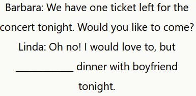 Linda: Oh no! Mi piacerebbe molto, ma stasera vado a cena con il mio ragazzo.