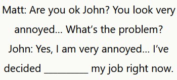 John: Sì, sono molto seccato… Ho deciso di lasciare il mio lavoro proprio adesso.