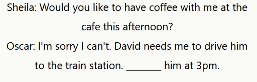 Oscar: Mi dispiace di non poterlo fare. David deve essere accompagnato alla stazione ferroviaria. Lo incontrerò alle 15.00.