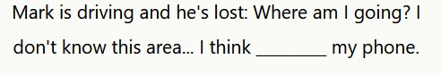 Mark sta guidando e si è perso: Dove sto andando? Non conosco questa zona… Penso che controllerò il mio telefono.
