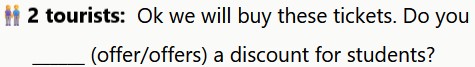 👫2 turisti: Ok, compriamo questi biglietti. Offrite uno sconto per gli studenti?