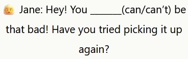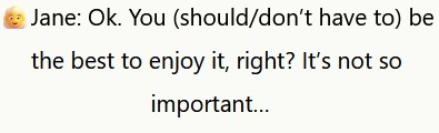 👱♀️Jane: Ok. Non è necessario essere il migliore per goderselo, giusto? Non è così importante…