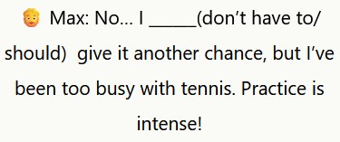 🧔 Max: No… Dovrei dargli un’altra possibilità, ma sono stato troppo impegnato con il tennis. Gli allenamenti sono intensi!