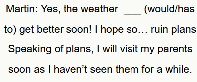 ℹ️ “has to” indica un obbligo. Martin ritiene che il tempo dovrebbe essere migliore!