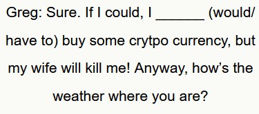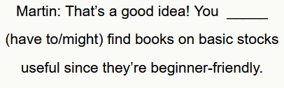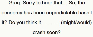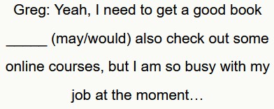 Il prossimo esercizio di conversazione contiene i verbi modali “might” “may” “have to” e “would”.