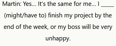 Martin: Sì… È lo stesso per me… Devo finire il mio progetto entro la fine della settimana, altrimenti il mio capo sarà molto scontento.