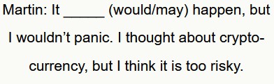 ℹ️ “would” indica un probabile esito positivo in questa situazione immaginaria. “may” non è corretto perché suggerisce una possibilità, ma Martin sembra molto fiducioso.
