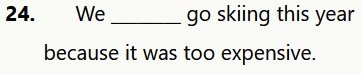 Quest’anno non siamo potuti andare a sciare perché era troppo costoso.