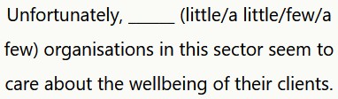 Few, a few, little, a little, Różnice i Ćwiczenia