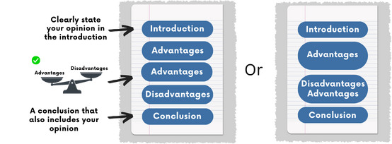 ⚠️学生们经常犯的一个错误是,在没有被问及的情况下就表达他们的观点(如”I believe”或”In my opinion”等)。对这个问题来说,这样做将会被扣分。你只需要客观地陈述和解释一般的优缺点,并在结论部分总结你所说的内容。