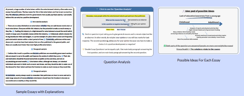 这些范文与其他在线网站上的雅思范文有所不同。我们花了大量时间对这些范文进行深入分析,以揭示它们为何能够获得高分。每篇文章都有评语,同时还有对句型、连接词类型、常见问题以及所用词汇的全面解析。